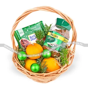 Праздничная шкатулка - корзина с фруктами и конфетами