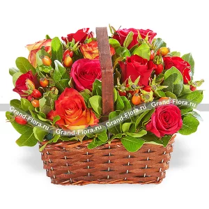 Букет оранжевых роз + хризантемы - Осенний коктейль