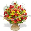 Уменьшенный: роза красная - 11 шт., гербера красная - 9 шт., хризантема кустовая желтая - 3 шт., солидаго - 4 шт., лист рабелини - 1 шт., салал, оазис, корзина.