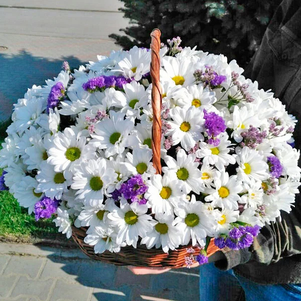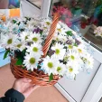 Корзинка отличная! Как будто ромашек охапка! Цветы свежие и доставлено все быстро!спасибо!!!