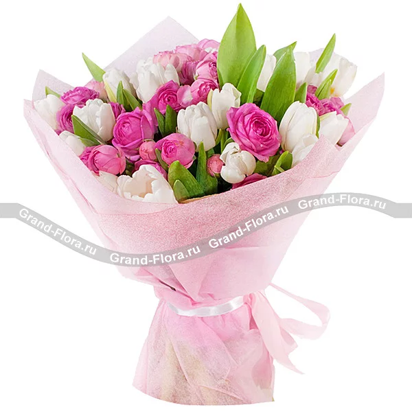 Мелодия души – букет из тюльпанов и кустовой розы