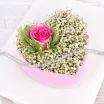 Уменьшенный: роза розовая - 1 шт., гипсофила - 7 шт., питтоспорум, фетр, оазис.