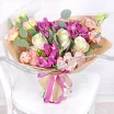 Букет "Самой чудесной" - новинка, состоящий из роз, фиолетовых альстромерий и розовой эустомы. Розы являются символом любви и романтики, а фиолетовые альстромерии и розовая эустома добавляют нотку эксклюзивности и роскоши в букет.