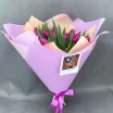 7 тюльпанов: тюльпаны Фиолетовые (возможна замена оттенка на сиреневые или малиновые)- 7 шт., упаковка крафт, фиолетовый бант.