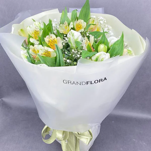 Букет был доставлен во время и упакован очень аккуратно. Я была очень довольна его внешним видом, белые альстромерии создали чистый и элегантный образ. Я обязательно буду заказывать в этой компании цветы снова.